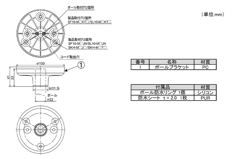 回転灯・表示灯の3点ボルト足取付