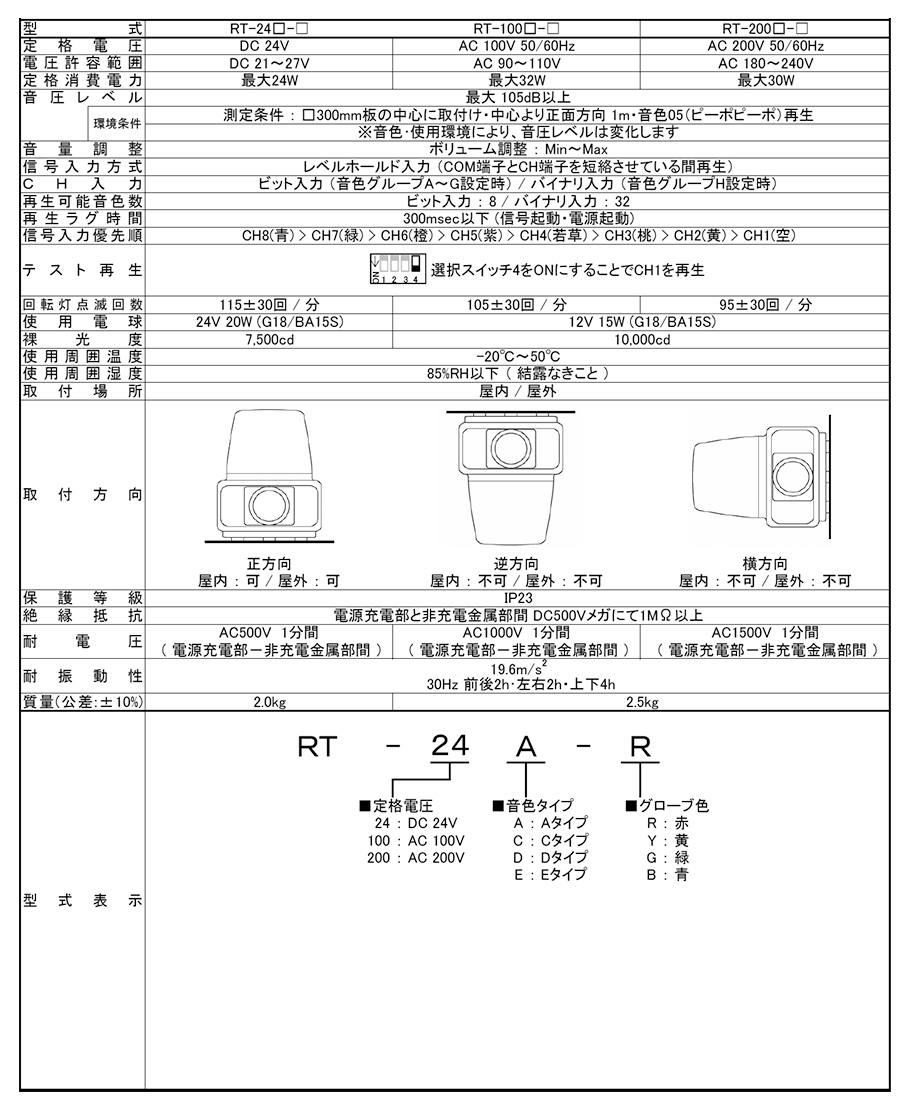 (回転灯、表示灯用)