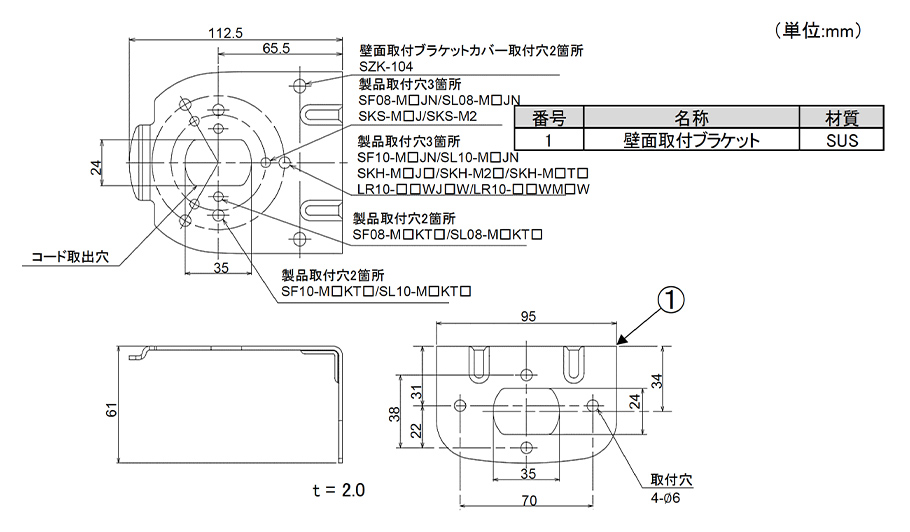壁面取付ブラケットSZK-102用カバー