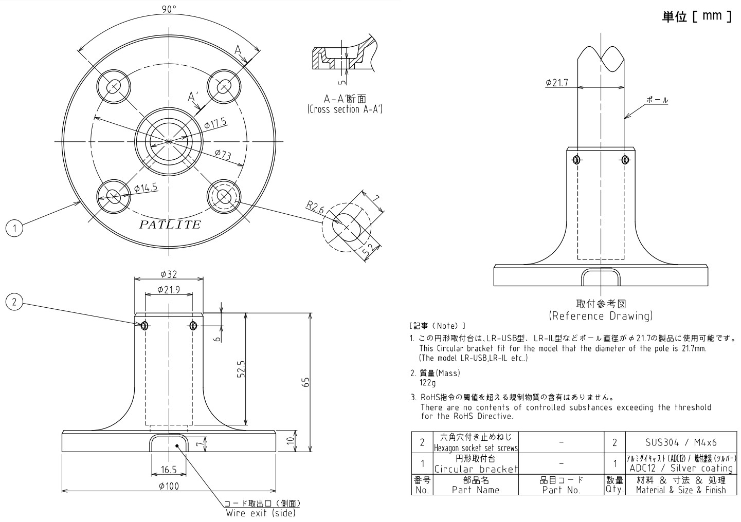 ●PATLITE SHOP取扱対応機種:LR4,LR5,LR6,LA6,LR6-USB,LR6-IL(Φ21.7ポール用),