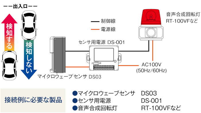 コントローラー不要で、車両出庫時の事故防止にマイクロウェーブセンサと光・音で車両の接近をお知らせ!