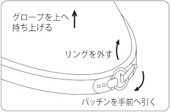(2)パッチンを手前へ倒し、パッチンのリングを外します。