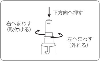 (4)新しい電球を下方へ押し、右方向へ回し取り付ける。