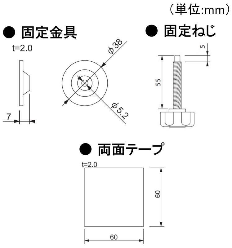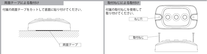 ■下図を参考に両面テープまたはタッピンねじにて取付けてください。