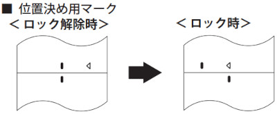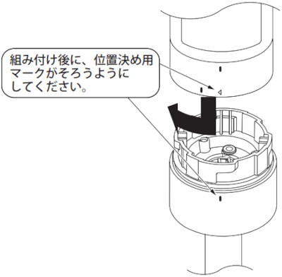 位置決め用マークを合わせてはめこみ、時計周りに回してロックしてください。