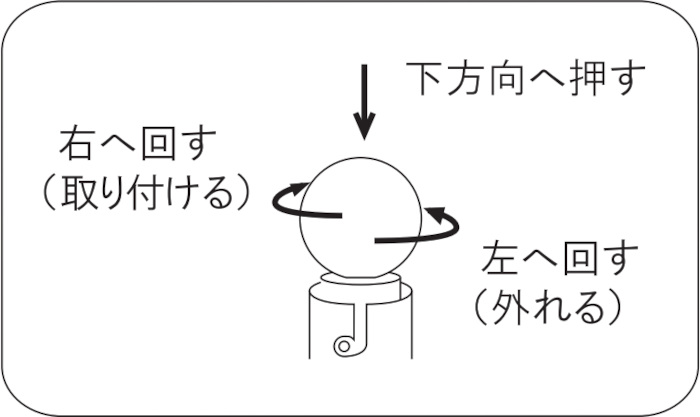 ④新しい電球を下方へ押し、右方向へ回し取り付けます。