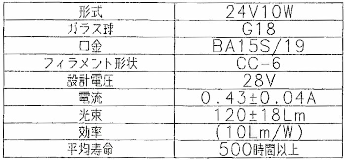 補修パーツ 白熱電球24V10W