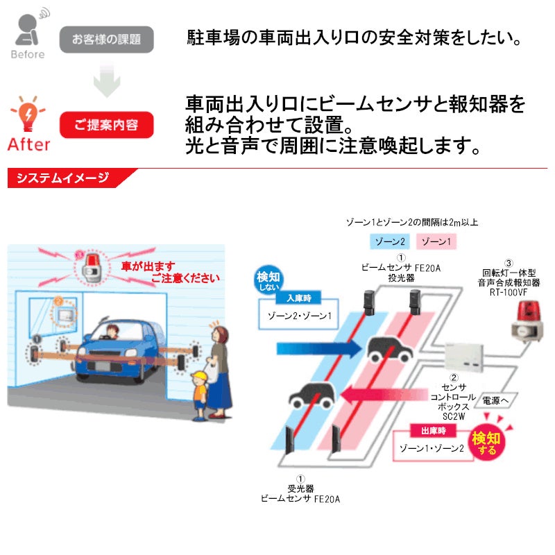 他の画像を見る 設置機器をセットでご提供!車両の入出庫をセンサで感知し光と音で注意喚起 DS03-SET:内容物 DS03・DS-001・RT-100VF・SZ-023 各1台 ¥ 338,184 税込 詳細を見る お気に入りに登録する