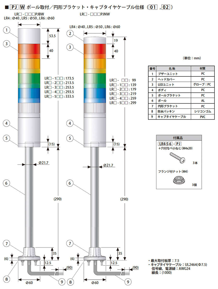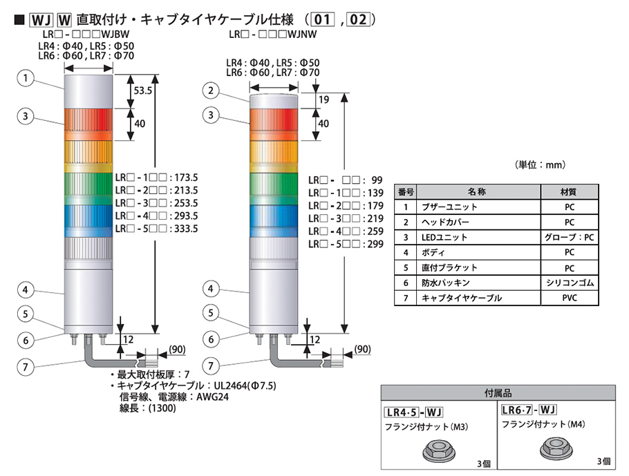 LR6-02WJNW型:上記画像②④⑤⑥⑦部分となります。