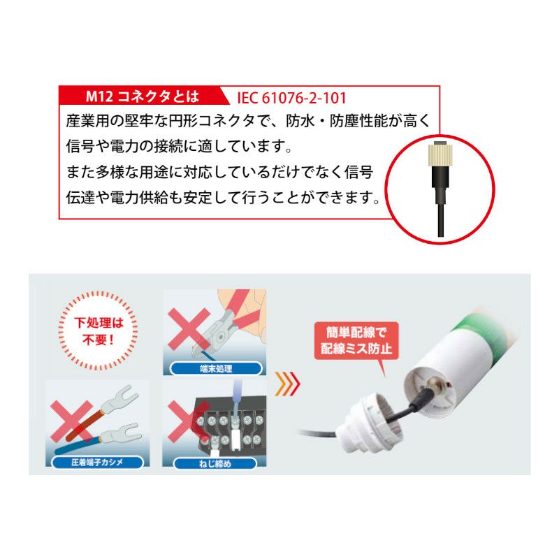 M12コネクタ仕様で簡単配線、工数削減を実現。多様なシーンに適したΦ60 積層信号灯LR6シリーズ。 LR6-02(M12仕様):