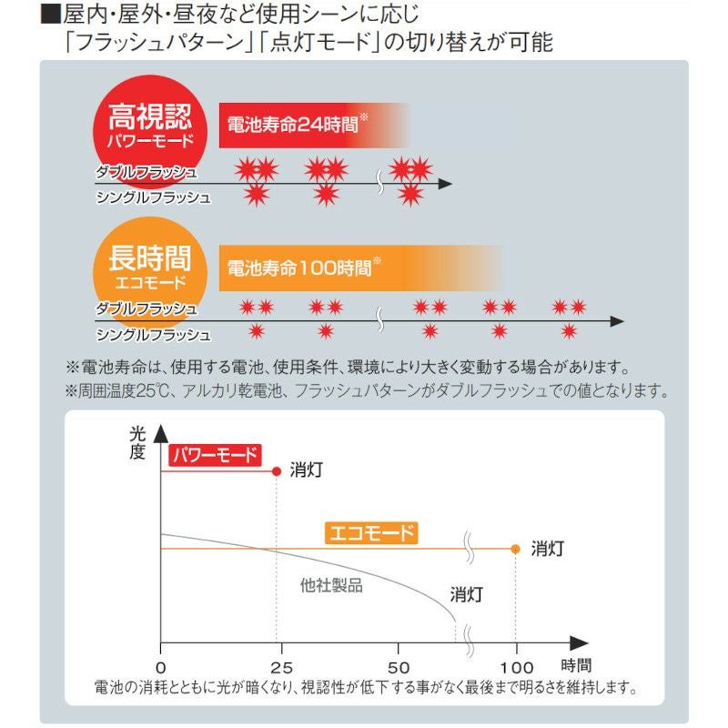 他の画像を見る 屋内・屋外・昼夜など、使用シーンに応じ『フラッシュパターン』『点灯モード』の切り替えが可能。 PFH-BT:(φ101)電池式フラッシュ表示灯 ¥ 22,671 税込 詳細を見る お気に入りに登録する